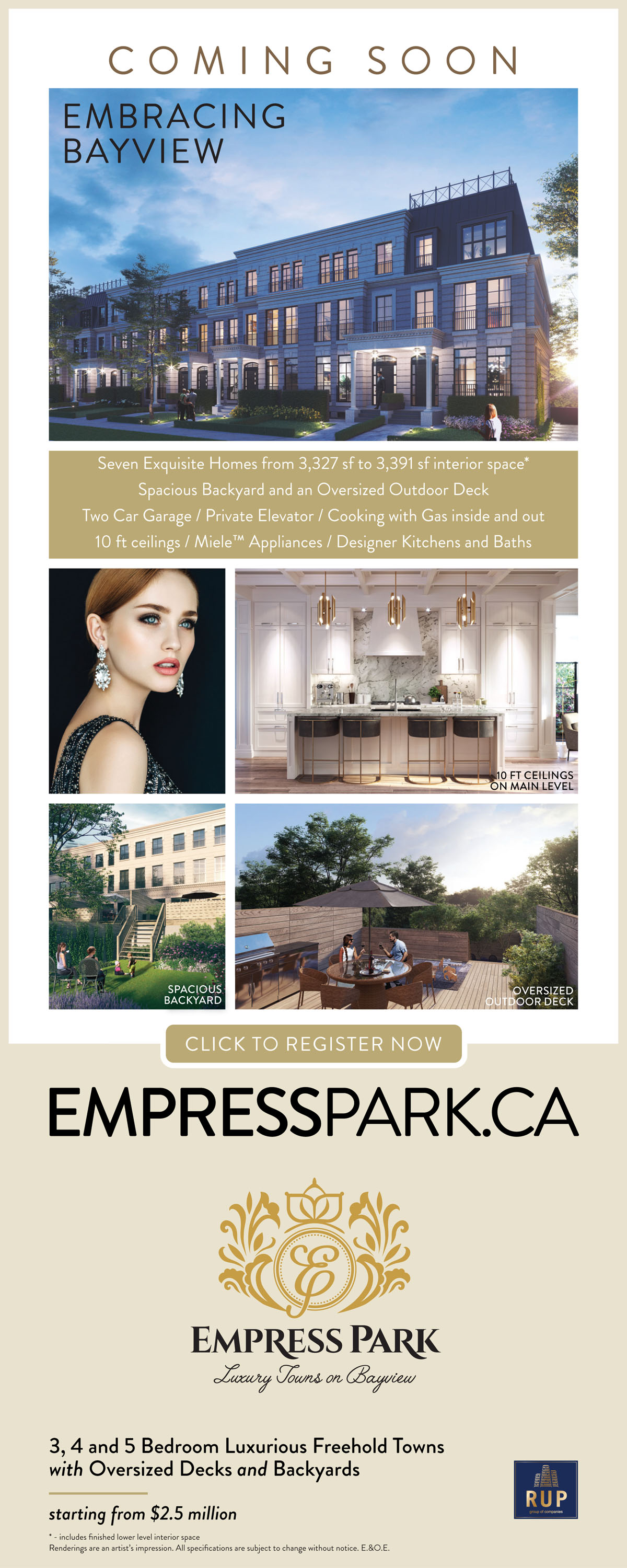 Introducing Empress Park Executive Towns, an exclusive enclave of luxury townhomes nestled in one of Toronto’s most prestigious and historic neighourhoods. Here you'll experience gracious living spaces with pure opulence.