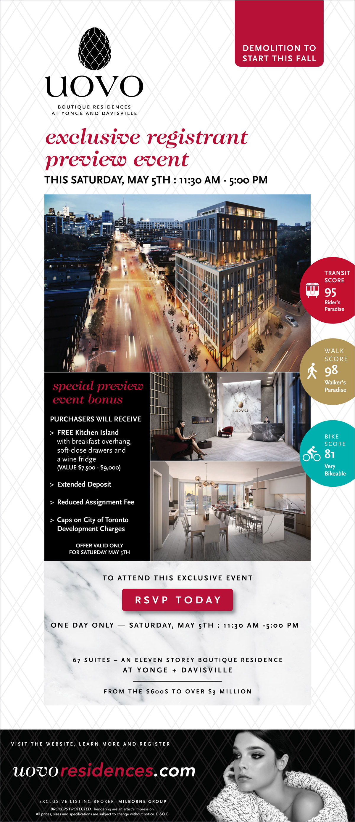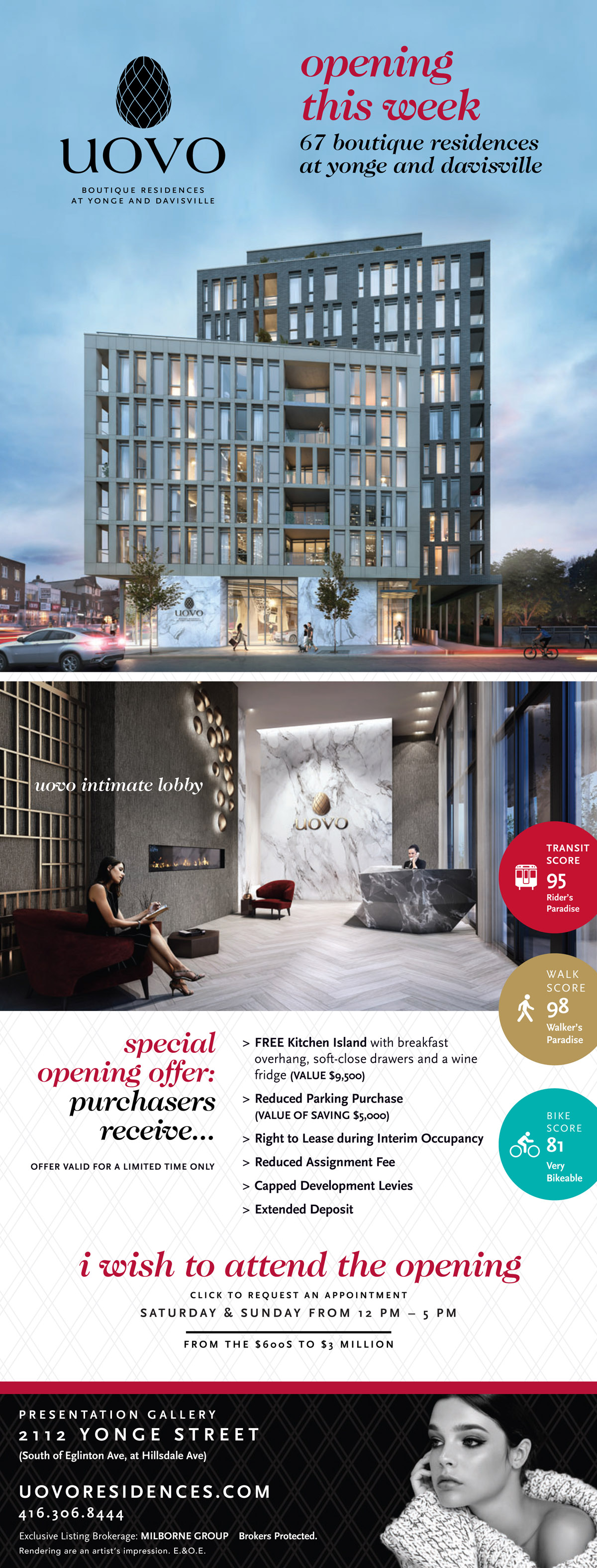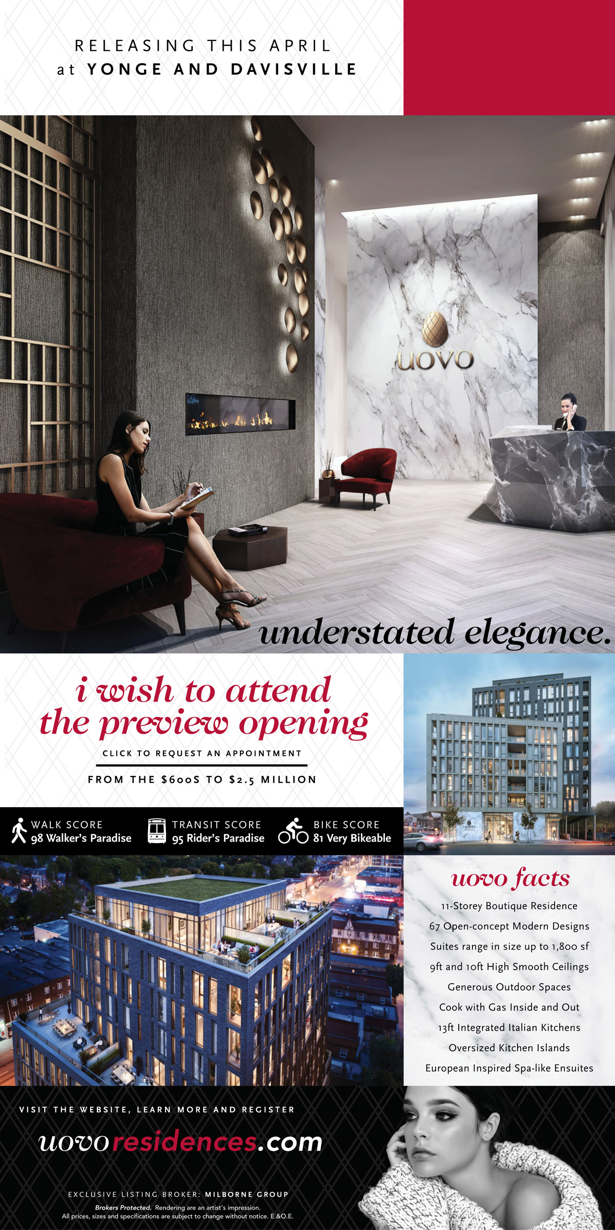 Beautifully orchestrated and thoughtfully designed, uovo is a uniquely intimate boutique residence at Yonge and Hillsdale. It’s steps from Davisville, and just south of Yonge and Eglinton, where the city really comes alive.