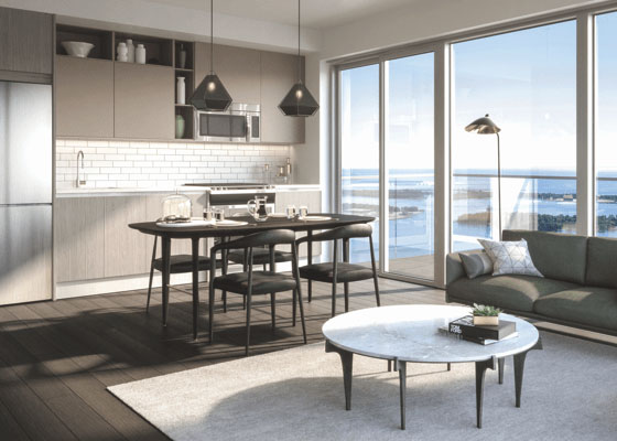 This 29-storey, 308-unit high-rise, situated in the heart of The Esplanade, offers amazing indoor/outdoor amenities, luxury living and an unbeatable location. Designed by Peter Clewes of Architects Alliance, with a sleek, white silhouette and articulated glass balconies, it rises 29 storeys from a dramatic 7-storey podium.
