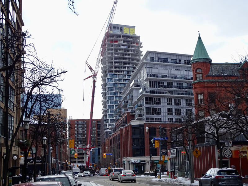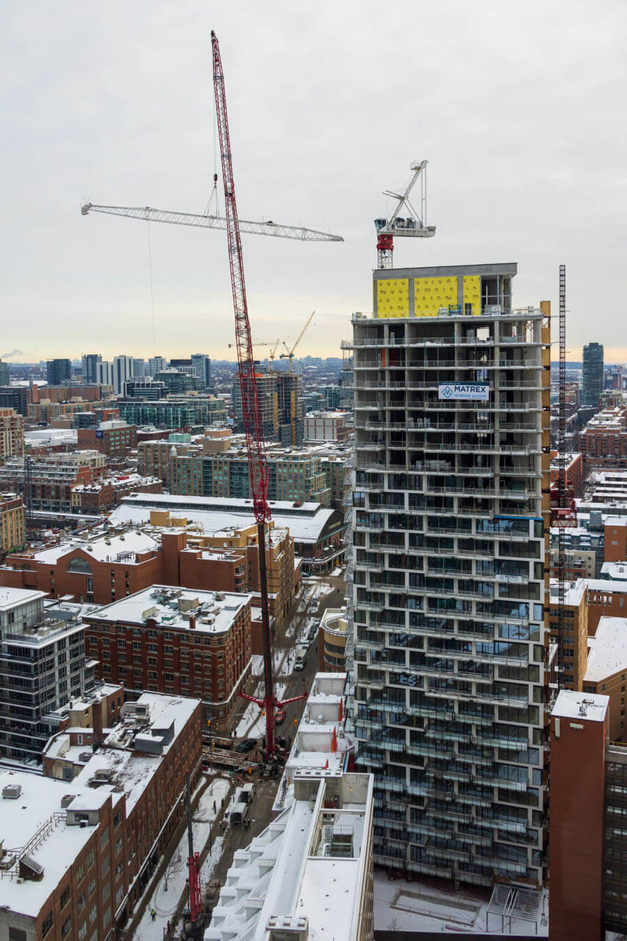 Construction is pressing along on the southwest corner of Church Street and The Esplanade in Toronto's St Lawrence Market area, where a new condominium tower from Harhay Developments and Carttera Private Equities is racing towards welcoming its first residents later this year.